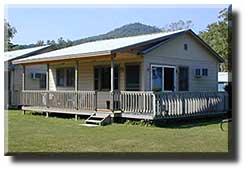 Two Bedroom Cabin (cabin #10) is air conditioned with 2 bedrooms, living room with 32" LED TV, kitchen, bath and screened in porch.